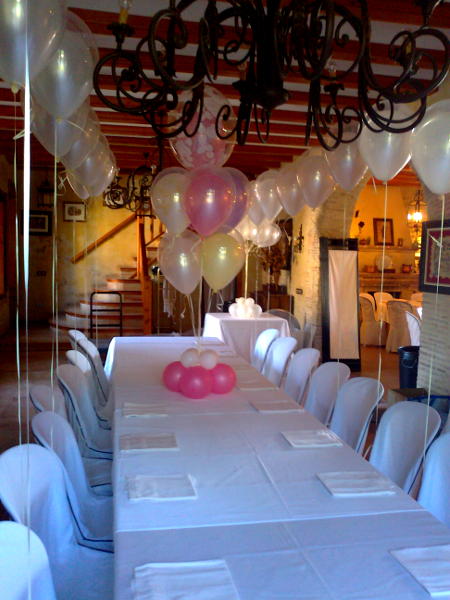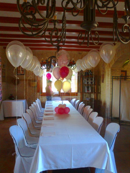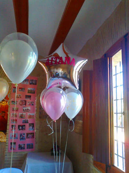 También se utilizó el globo impreso tipo microfoil con el nombre de la comunianta, así como globos con impresiones en motivos de mi 1ª comunión.