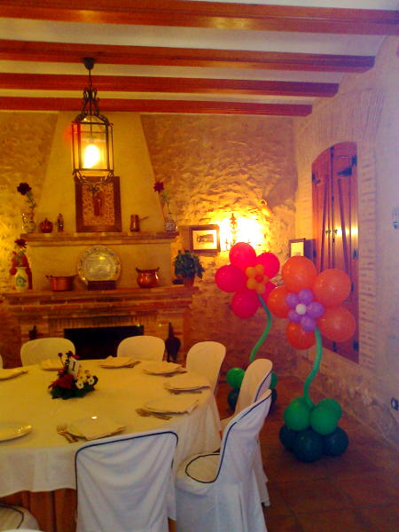 En la Alquería del Rey en Benimamet, para la comunión de Aitana realizamos una decoración con globos sencilla del espacio creando un ambiente festivo y elegante.