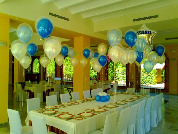 GlobosJC colocó globos tipo burbuja, en tonos azules y en blanco en las distintas sillas y a dos alturas.